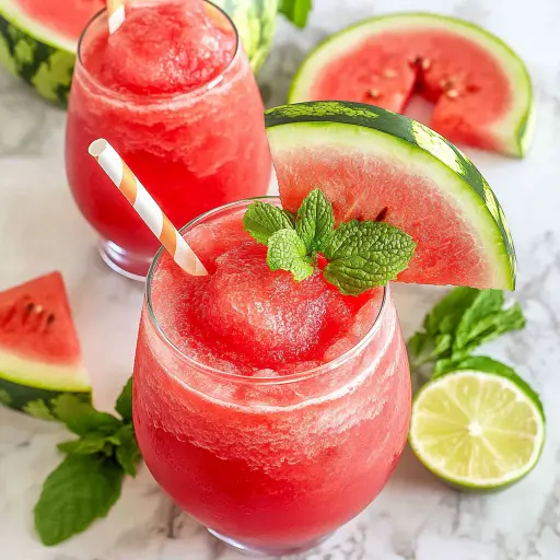 Serve the watermelon slushie immediately. Garnish with fresh lime slices or mint leaves for an added touch of freshness and visual appeal. For a fun presentation, consider serving the slushie in mason jars or clear glasses with colorful straws.