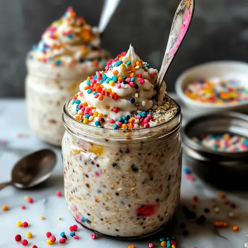 Birthday Cake Overnight Oats are a delightful and convenient way to start your day with a burst of flavor and fun. This recipe is not only incredibly easy to make but also highly customizable, allowing you to tailor it to your specific dietary needs and preferences. Whether you’re looking for a quick and healthy breakfast option or a delicious treat to satisfy your sweet tooth, these overnight oats are sure to become a staple in your kitchen. So go ahead, celebrate every morning with a taste of birthday cake!