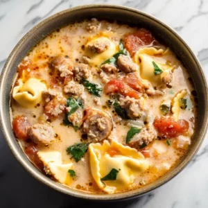 Description: A hearty and flavorful soup brimming with Italian sausage, tender cheese tortellini, and fresh spinach in a creamy tomato …