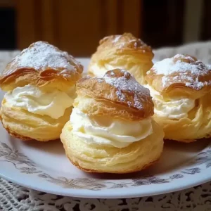 Description: These light and airy cream puffs, filled with sweet, homemade whipped cream and dusted with powdered sugar, are a …
