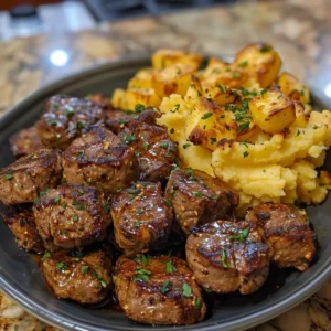 VOICI VOTRE SORTIE Garlic Butter Steak Bites and Cheesy Smashed Potatoes Indulge in a hearty meal with flavorful garlic butter …