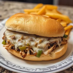 Lazy Slow Cooker Chicken Cheesesteak Sandwich