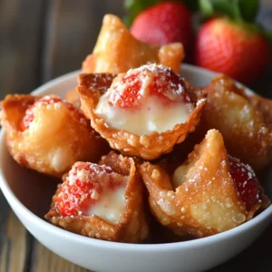Description:Indulge in the delightful fusion of creamy cheesecake and fresh strawberries, all wrapped in a crispy, golden-brown wonton. Each bite …