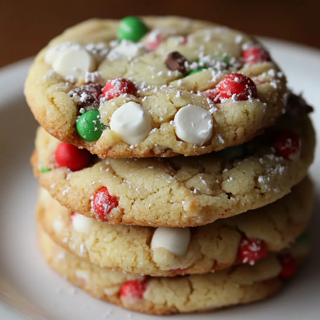 Once your dough is ready, fold in half of the red and green sprinkles. Add the optional white chocolate chips or festive M&M’s at this stage if you’d like to include these delicious extras. Mix gently until everything is evenly distributed throughout the dough.