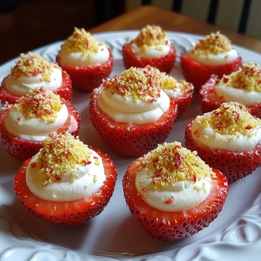 In conclusion, Cheesecake Deviled Strawberries are a delightful and elegant treat that combines the best of both worlds: the freshness of strawberries and the creamy richness of cheesecake. They are easy to make, visually stunning, and packed with flavor, making them a perfect addition to any gathering. Whether you’re hosting a party or simply looking to impress your family with a special dessert, these strawberries are sure to be a hit. So grab your ingredients, get creative, and enjoy the deliciousness of these Cheesecake Deviled Strawberries!