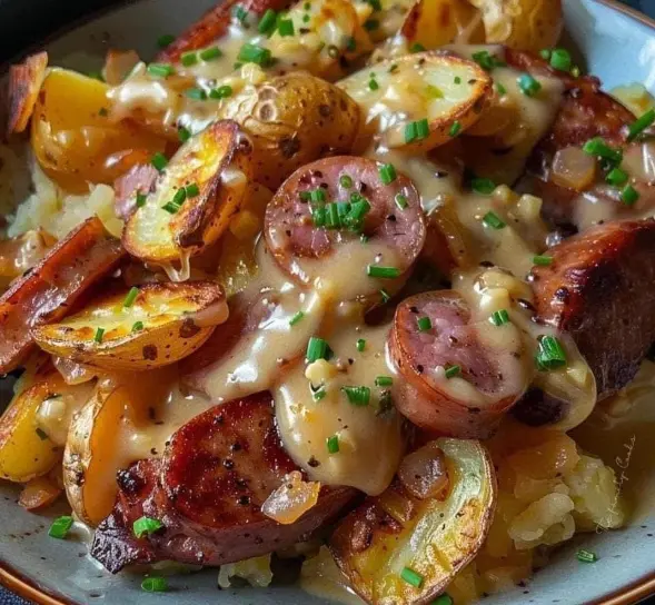 Cheesy Ranch Potatoes and Smoked Sausage is a hearty and satisfying dish that combines tender potatoes, savory smoked sausage, and a creamy ranch flavor. Ideal for family dinners or potlucks, this comfort food is sure to please.