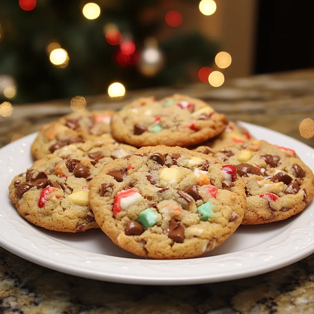 To present your Christmas Kitchen Sink Cookies beautifully, arrange them on a festive platter, sprinkle them lightly with powdered sugar, or stack them in a decorative cookie jar. Add a few sprigs of holly or festive decorations around the platter to enhance the holiday spirit.