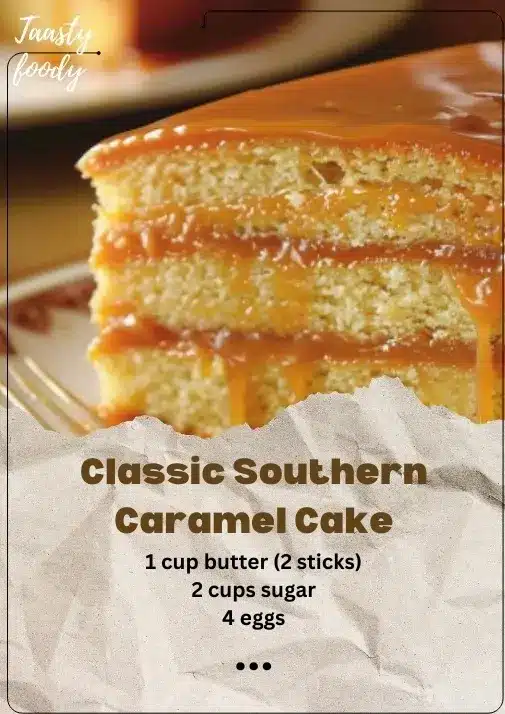 This Classic Southern Caramel Cake is a celebration of rich, buttery goodness. With layers of moist, tender cake and a luscious caramel frosting, this dessert is a true delight for anyone with a sweet tooth. The caramel frosting is the star of this show, bringing a deep, indulgent flavor that perfectly complements the lightness of the cake. Whether for a special occasion or just to satisfy a craving, this recipe is a timeless favorite that’s sure to please.