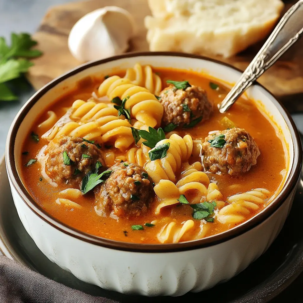 This Creamy Italian Meatball Soup is delicious on its own, but you can elevate your meal by serving it with a side of crusty garlic bread or a fresh green salad. Pair it with a glass of Italian red wine for a truly authentic experience. For a bit of extra flair, consider topping the soup with a drizzle of extra virgin olive oil or a sprinkle of crushed red pepper flakes for added heat.