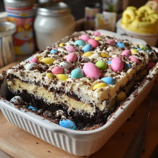 Easter is a time for celebration, family gatherings, and, of course, delicious food! Among the many delightful desserts that make their way to the table during this holiday, the Easter Dirt Cake Casserole stands out as a fun and whimsical option. With its layers of creamy goodness and crunchy cookie texture, this dessert is sure to be a hit with both kids and adults alike. The vibrant colors of the candy-coated chocolates add a festive touch that perfectly symbolizes the joy of the season. Whether you’re hosting an Easter brunch or simply looking for a sweet treat to enjoy at home, this casserole is the perfect addition to your dessert lineup.