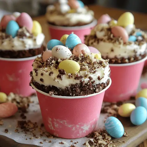 Easter Dirt Cups are a fun and whimsical dessert that brings a touch of childhood nostalgia to your holiday celebrations. These delightful treats combine layers of crushed chocolate sandwich cookies, a creamy chocolate filling, and playful decorations that mimic a garden in full bloom. Perfect for kids and adults alike, they provide a deliciously rich chocolate flavor while also offering a unique and engaging presentation.