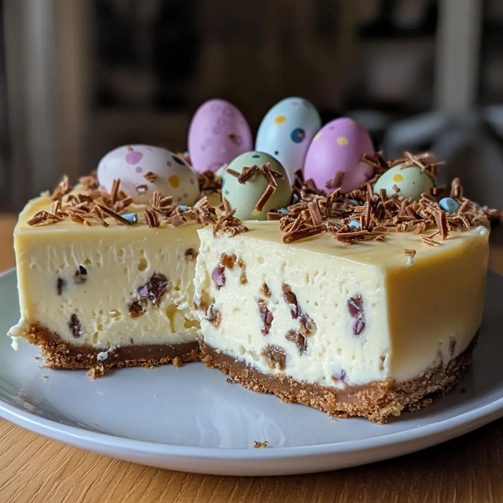 This Easter Egg Cheesecake is not only visually stunning, but it is also incredibly easy to make. With a delightful blend of creamy textures and sweet chocolate flavors, it captures the essence of Easter in every bite. The use of leftover Easter eggs makes it a fantastic way to repurpose holiday treats, and the no-bake aspect means you can prepare it ahead of time, freeing you up to enjoy your celebrations.