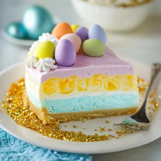 Description: This Easter Jell-O Pie, or Rainbow Jell-O Dream Pie, is a vibrant, layered dessert perfect for celebrating spring. It features a buttery graham cracker crust filled with creamy, colorful Jell-O layers, each infused with the nostalgic flavors of Starburst candies. A delightful treat for both kids and adults, it’s as visually stunning as it is delicious.