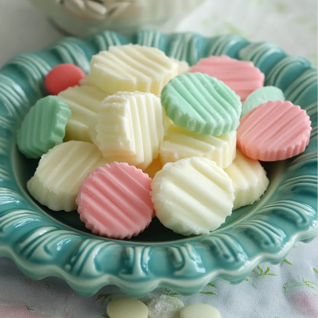 These colorful mints can be served in decorative candy dishes or wrapped in cellophane bags for party favors. They pair wonderfully with coffee or tea and can be a delightful addition to dessert platters during celebrations.