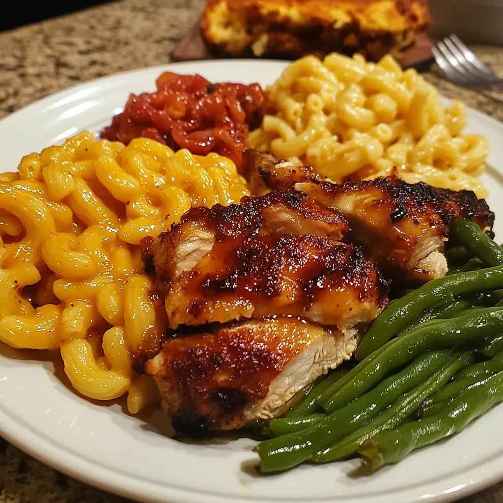 This chicken pairs beautifully with macaroni and cheese, roasted vegetables, or a fresh garden salad for a well-rounded meal.