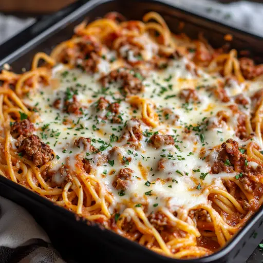 Description: This Million Dollar Spaghetti recipe is a crowd-pleasing casserole featuring layers of flavorful meat sauce, perfectly cooked spaghetti, a creamy cheese mixture, and a bubbly mozzarella topping. It’s comfort food at its finest, guaranteed to be a hit at potlucks, family dinners, or any occasion where you need a dish that’s both satisfying and easy to make.