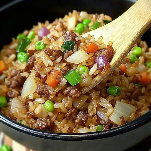 Description: This Onion Beef Fried Rice recipe transforms simple ingredients into a satisfying and flavorful meal. Ground beef is browned to perfection, fragrant onions and garlic are sautéed, and vibrant mixed vegetables add a touch of freshness. All of this is tossed with fluffy rice and a savory sauce, creating a dish that is both comforting and easy to prepare. Perfect for a weeknight dinner or a quick lunch, this recipe is a delicious way to use leftover rice and create a complete and balanced meal.