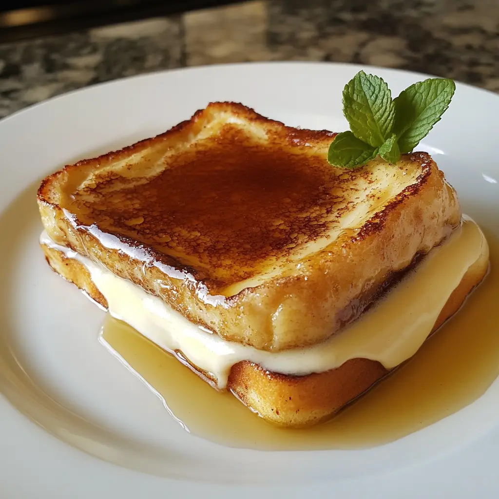 Serve your Overnight Crème Brûlée French Toast warm, drizzled with pure maple syrup. Fresh berries, whipped cream, or a dusting of powdered sugar can also enhance the presentation and flavor. For a complete brunch experience, pair it with a refreshing fruit salad or a side of crispy bacon.