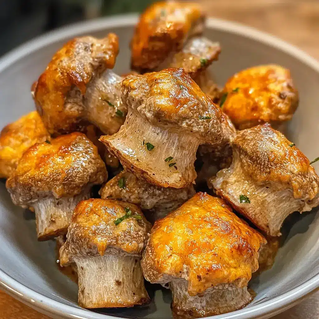 These mushrooms pair well with grilled meats, salads, or as a topping for pasta. You can also serve them with a dipping sauce like ranch or a garlic aioli.