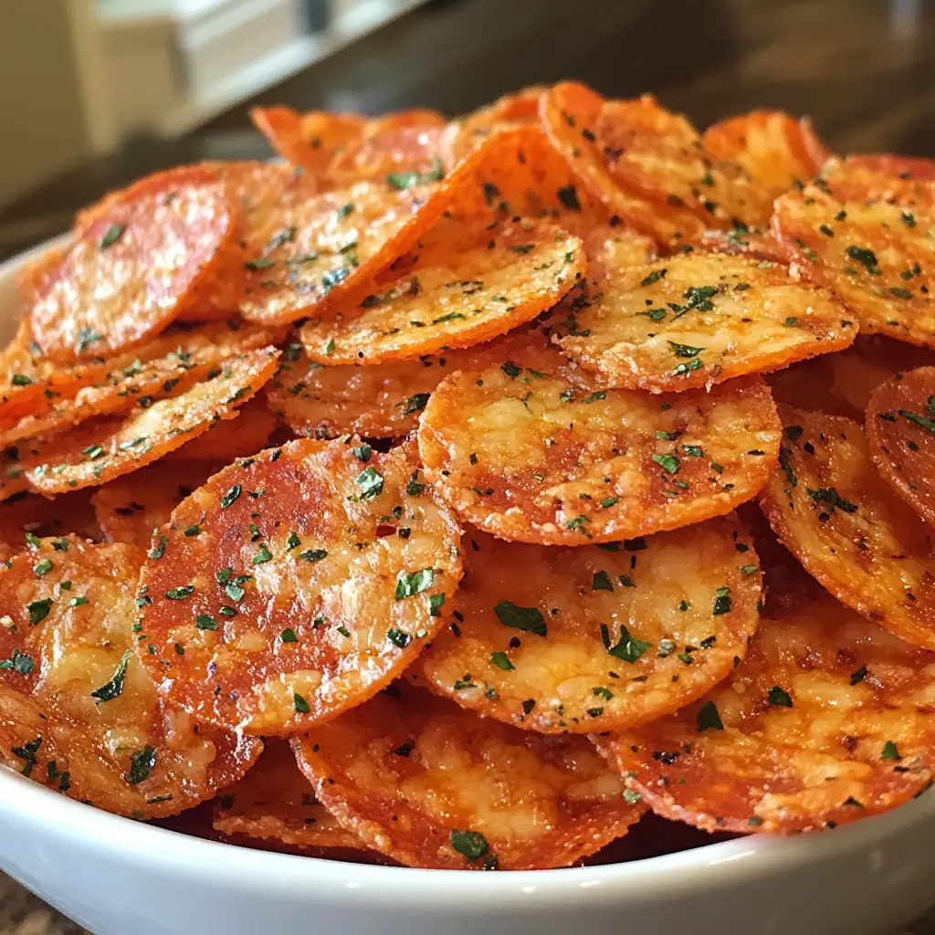 Pepperoni and cheese crisps are a simple yet indulgent snack that combines the savory, spicy flavor of pepperoni with the creamy, gooey goodness of melted cheese. These delightful bites are baked to perfection, resulting in a crunchy texture that pairs wonderfully with your favorite dips or can be enjoyed on their own as a satisfying treat.