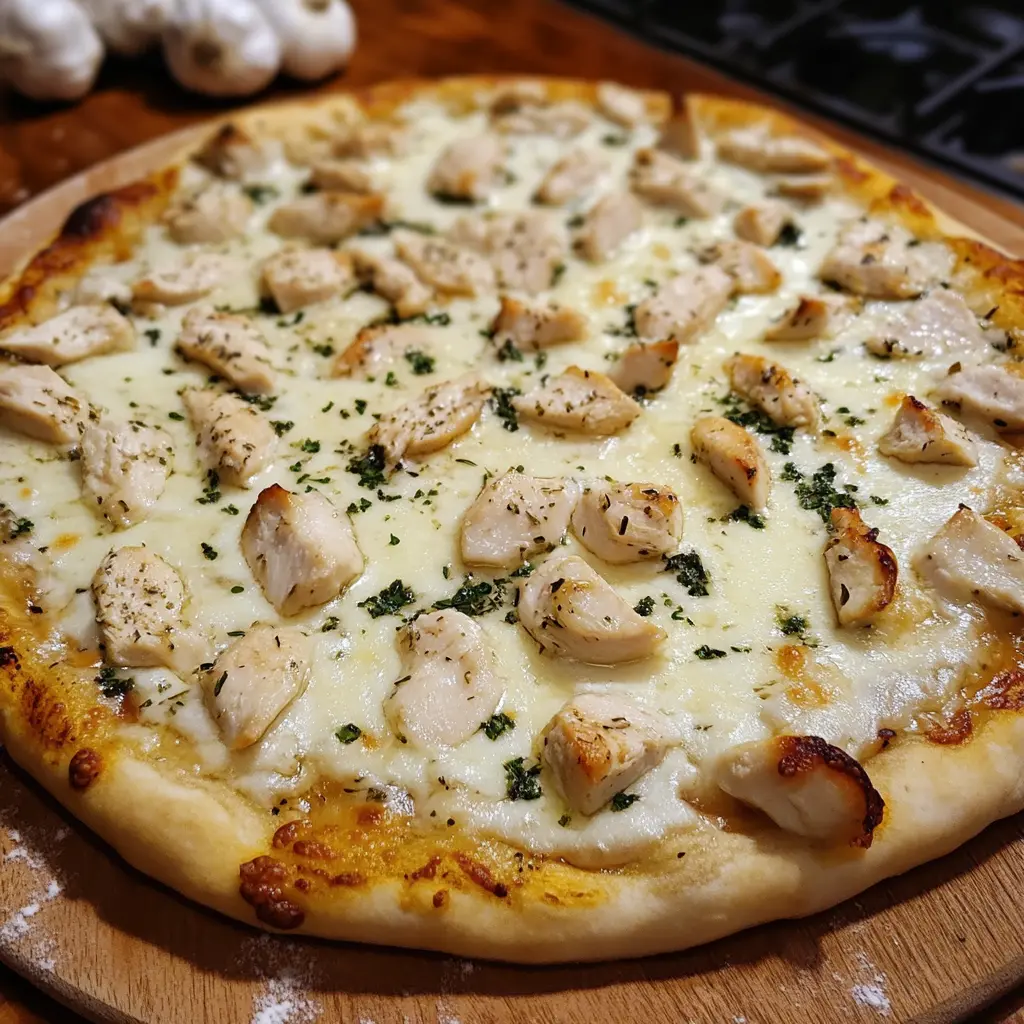 This Roasted Garlic, Chicken & Herb White Pizza is a delightful twist on traditional pizza. Featuring a creamy white sauce infused with roasted garlic, tender shredded chicken, and a medley of fresh herbs, this pizza is both comforting and sophisticated. The golden, crispy crust serves as the perfect foundation for the rich flavors, making it a standout dish for any pizza night or special occasion.
