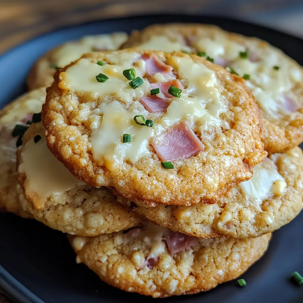 These Savory Ham and Cheese Cookies can be served as a delightful appetizer or snack. Pair them with a fresh salad for a light lunch or enjoy them alongside a bowl of soup for a comforting dinner. They also make an excellent addition to a charcuterie board, complementing cured meats, olives, and assorted cheeses. For a fun twist, try serving them with a tangy dipping sauce or a homemade garlic aioli.