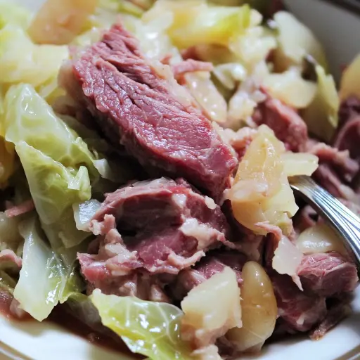 - Classic Presentation: Serve the corned beef sliced thinly alongside the cooked potatoes, onions, and cabbage.