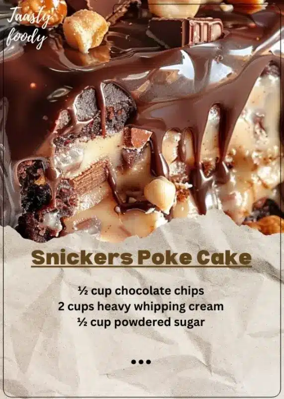 Indulge in the decadent delight of a Snickers Poke Cake, a heavenly dessert that combines the rich flavors of chocolate, caramel, peanuts, and cream. This cake is a true crowd-pleaser, perfect for any occasion where you want to impress your guests with a delicious treat.