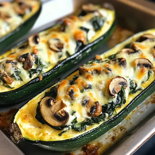 Zucchini is a versatile vegetable that can be used in numerous dishes, but stuffed zucchini boats take it to another level. Theyโre not only visually appealing but also provide a delightful blend of textures and flavors. This recipe highlights the earthiness of mushrooms, the freshness of spinach, and the creaminess of ricotta cheese, all brought together in a beautifully baked zucchini shell. Ideal for a weeknight dinner or a weekend gathering, these stuffed zucchini boats are sure to become a family favorite.